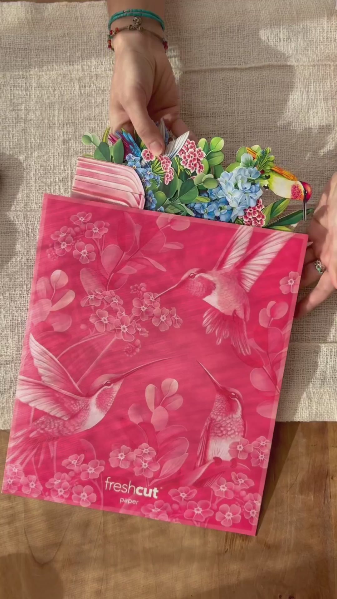 Buzzing with joy, six sky-bound hummingbirds flutter gracefully in vivid hues, brought to life by FreshCut Paper’s innovative wire design, which creates a stunning hovering effect. Nestled in a pink glass vase adorned with a retro-inspired label, lush pink verbena, delicate blue forget-me-nots, and striking blue and white delphiniums bloom beautifully alongside elegant eucalyptus branches. A cherished symbol of joy, good fortune, resilience, and recovery, this exquisite bouquet is perfect for Mother's Day, birthdays, anniversaries, or simply to brighten someone’s day. Send these picturesque blooms as a heartfelt gesture to someone special!