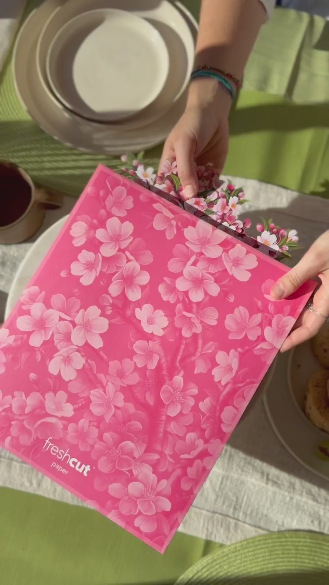 A fresh take on a bestseller: Meet our Japanese Cherry Blossom pop-up card! A celebration of Japan’s iconic sakura, these soft pink petals represent renewal and the wondrous beauty of nature and springtime. Unlike in the wild, this elegant display will remain in bloom year round and rests in an ornate jade inspired paper vase. Perfect for birthdays, just because, and so much more!