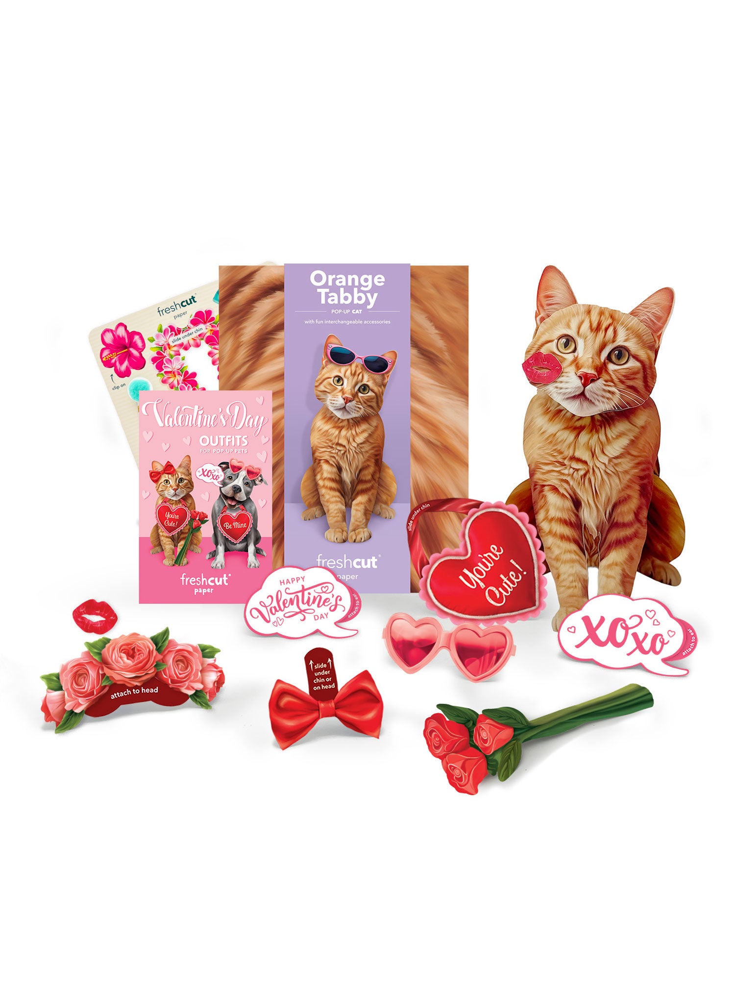Valentine's Day Orange Tabby Cat Pop-Up Card