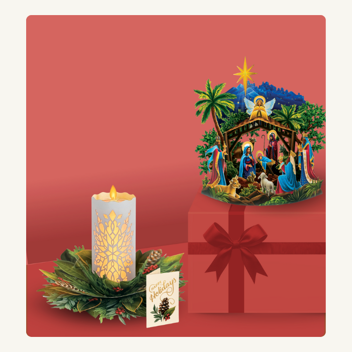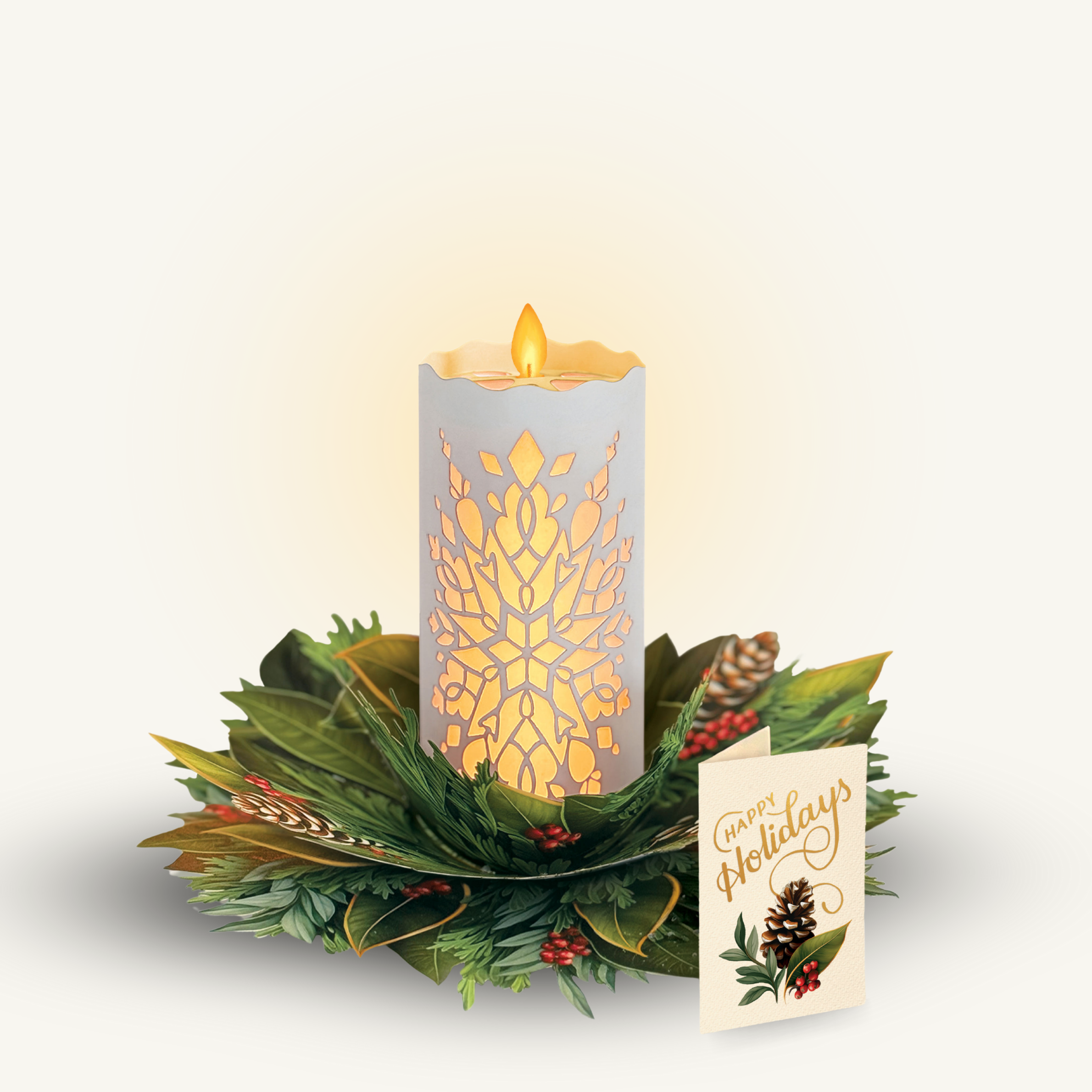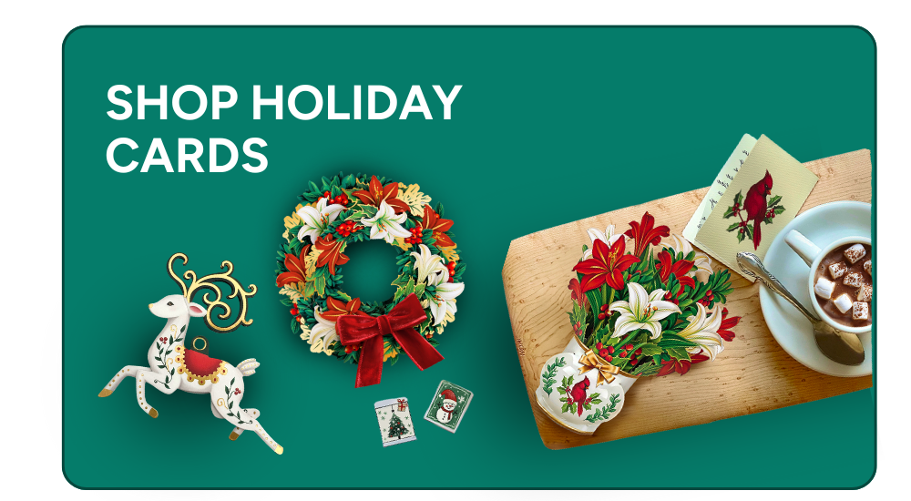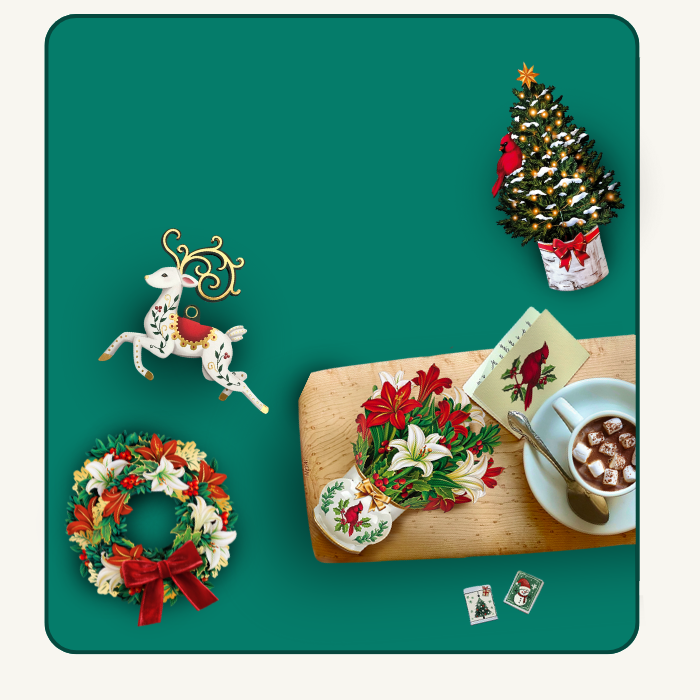 Our one-of-a-kind creations mail flat in beautiful envelopes, then pop open into vibrant designs you'll want to keep on display all season long.