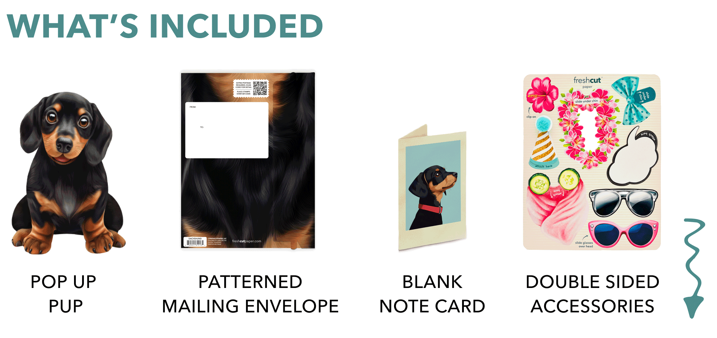 I ordered the pop up dachshund for a friend and it is sooooo cute. The little add ons make it fun to dress up for many occasions. Everything I ordered is adorable snd going to order more.