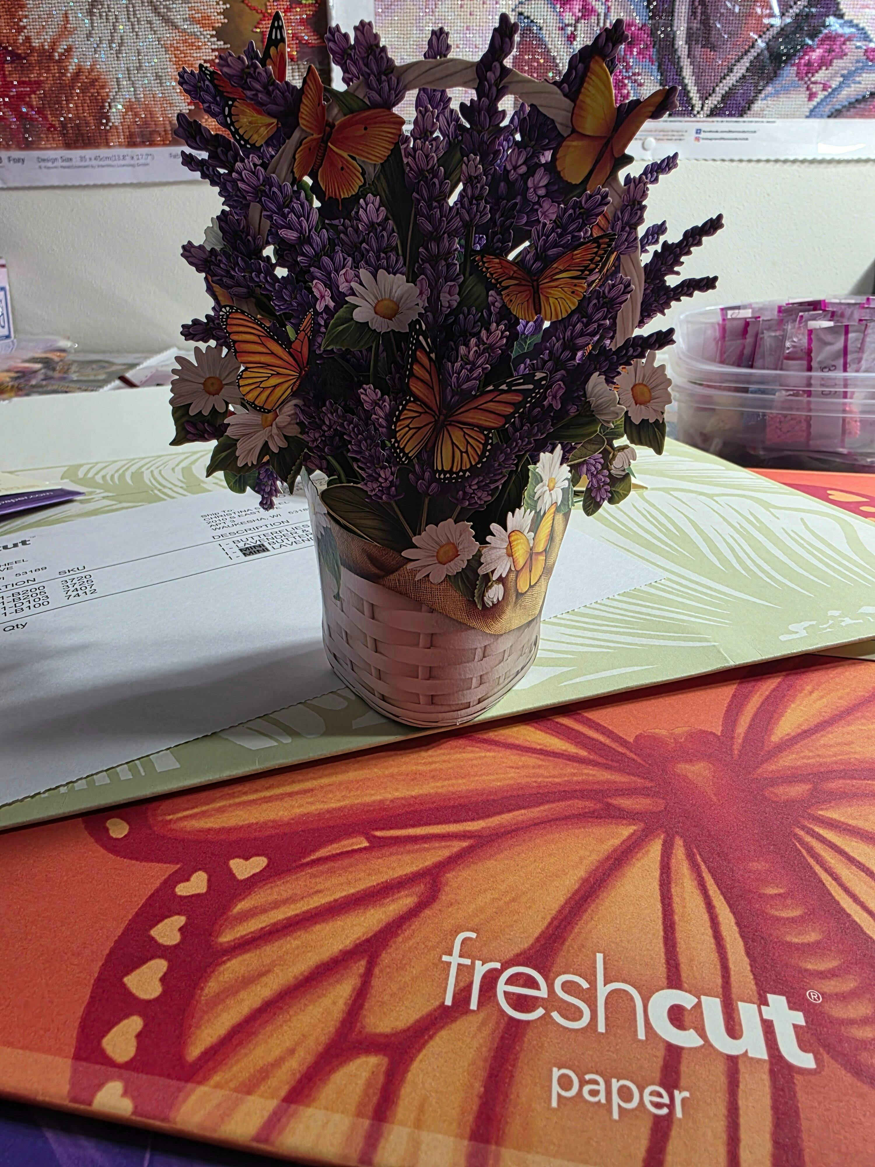 Inspired by the lavender fields of Provence, the Mini Lavender & Butterflies Pop-Up Card captures the essence of spring in a sophisticated yet charmingly petite form. Monarch butterflies flutter among delicate wildflowers, with each textured petal evoking a sense of tranquility and peace. The mini size captures its intricate beauty, making it a perfect balance of elegance and whimsy. Complete with a vibrant envelope, this mini pop-up card mails effortlessly with just a few forever stamps, offering a sophisticated gift in an irresistibly adorable package.
