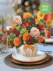 Life is gourd when it's pumpkin spice season! Enjoy the cinnamon shades of fall all year long with the Mini Pumpkin Spice paper bouquet. Mini and meticulously designed marigolds, garden roses, green hydrangeas, eucalyptus, red berries, and maple leaves blossom in a white pumpkin vase with a sweet, gingham bow. Pumpkin spice season is a state of mind with FreshCut Paper’s mini bouquet that never wilts, and always stays in style.