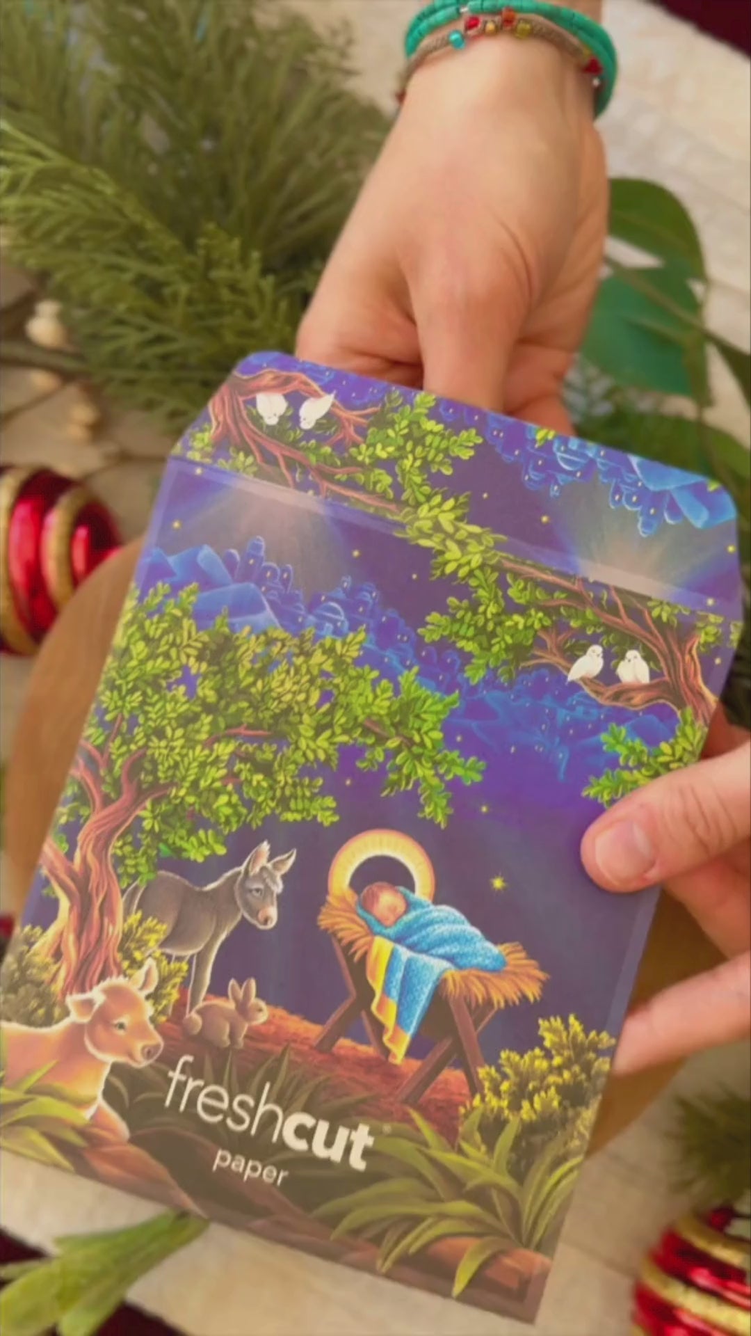 The Mini Nativity Scene is a small but radiant tribute to the true heart of Christmas. This thoughtfully crafted pop-up holiday card unfolds to reveal Mary, Joseph, the Wise Men, and baby Jesus beneath a shining star, surrounded by olive trees and Bethlehem’s serene skyline. With elegant gold foil accents and delicate details, this mini pop-up greeting card brings the timeless nativity story to life in a beautifully compact format. Perfect for displaying on a mantel, shelf, or holiday table, this mailable keepsake makes a meaningful gift and a heartfelt way to celebrate the season. A touching alternative to traditional holiday greeting cards, it’s easy to send and lovely to treasure — year after year.