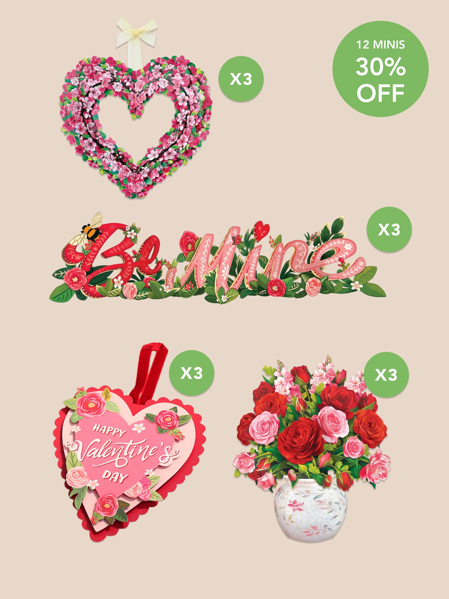 Make Valentine’s Day extra sweet with 12 mini pop-up cards in 4 customer favorite designs. Ideal for sharing with friends, family, classmates, or coworkers—these tiny cards are big on charm, featuring Mini Blooming Roses, Mini Cherry Blossom Hearts, Valentine's Heart Cards and Valentine's Day Wishes Accordion Cards from our 2026 collection, 30% off for a limited time!