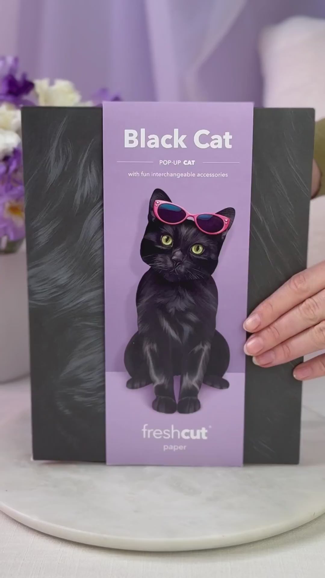 Give a Mother’s Day gift as magical as your mom with FreshCut Paper’s special edition Pop-Up Mother’s Day Black Cat. Just like moms, this sleek, playful tabby brings a little bit of enchantment into everyday life. Whether it’s for your mom, a first-time mom, stepmom, or cat mom, this charming keepsake is sure to make her smile long after the day is over. Each cat comes with interchangeable Mother’s Day accessories, a matching notecard, envelope, and a double-sided speech bubble so you can add your own magic to the moment.