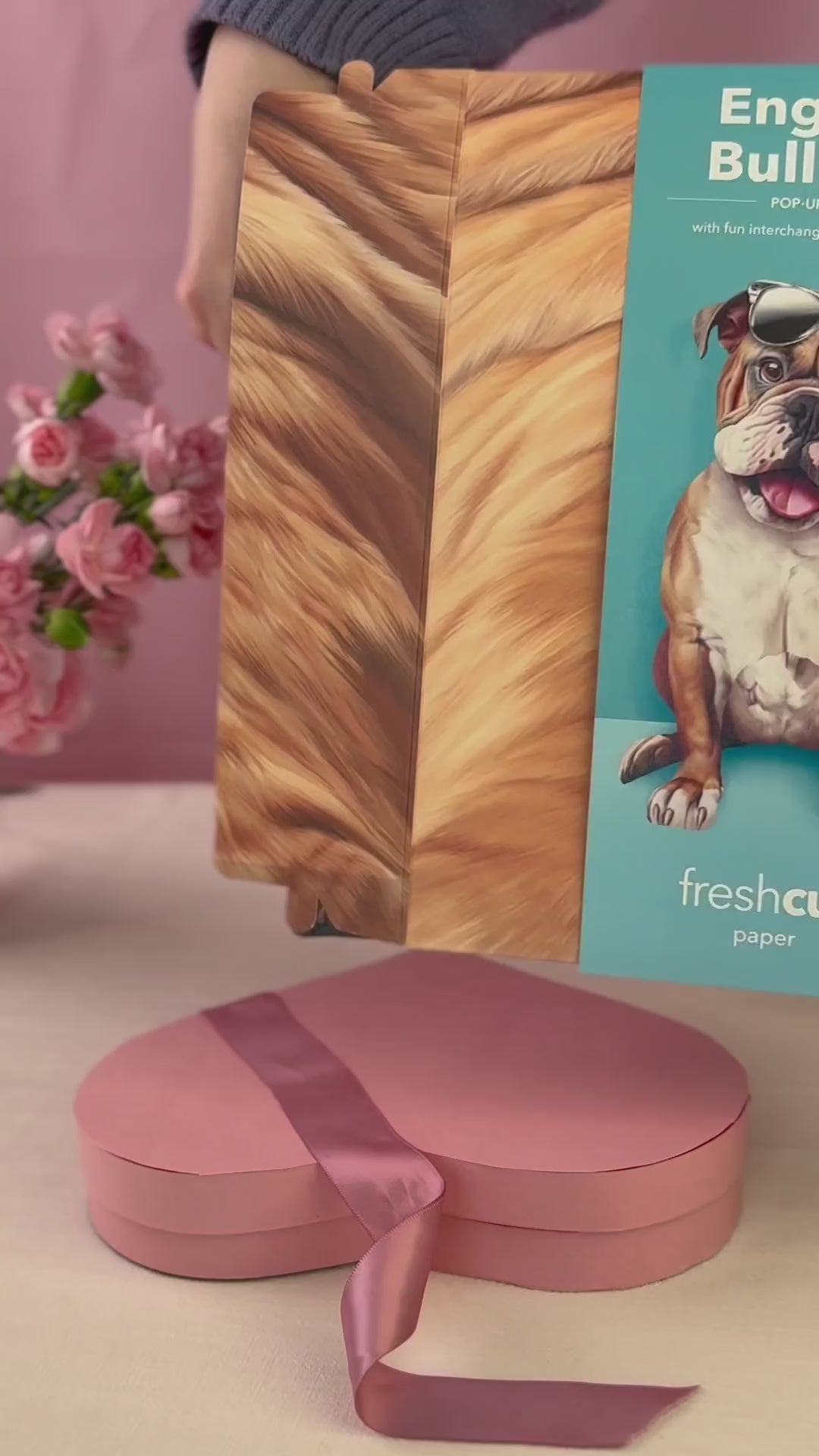 An adorable pop-up English bulldog brings all the bulldog love, minus the slobber, with a heart full of loyalty and a cheeky underbite that’s sure to make anyone swoon. Perfect for bulldog lovers or anyone who appreciates a loyal, lovable friend, this pet-themed Valentine’s card comes with a matching notecard, mailing envelope, and whimsical interchangeable accessories. Add your own wonderful woof with a customizable speech bubble and share the bulldog’s heartfelt affection with the ones you love. Roll into Valentine’s Day with FreshCut Paper’s Pop-Up English Bulldog—ready to steal hearts with its snort-tastic charm and squishy sweetness!